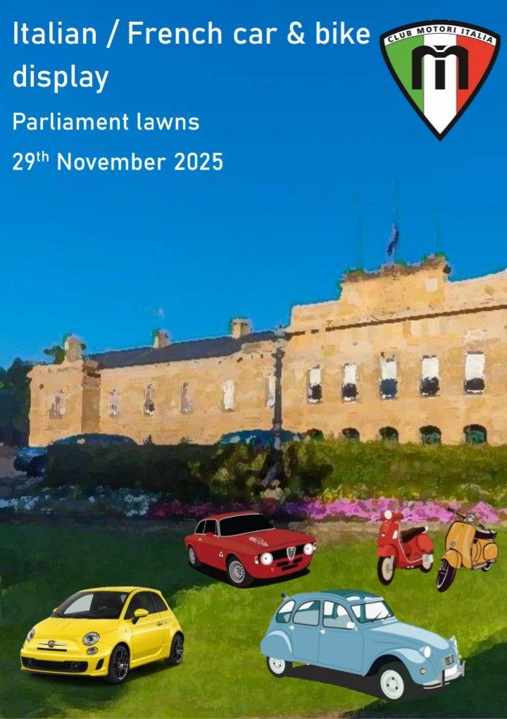 We have been invited by the Italian car club to join them in a car display on parliment hous elawns in hobart on the 29th of November 2025